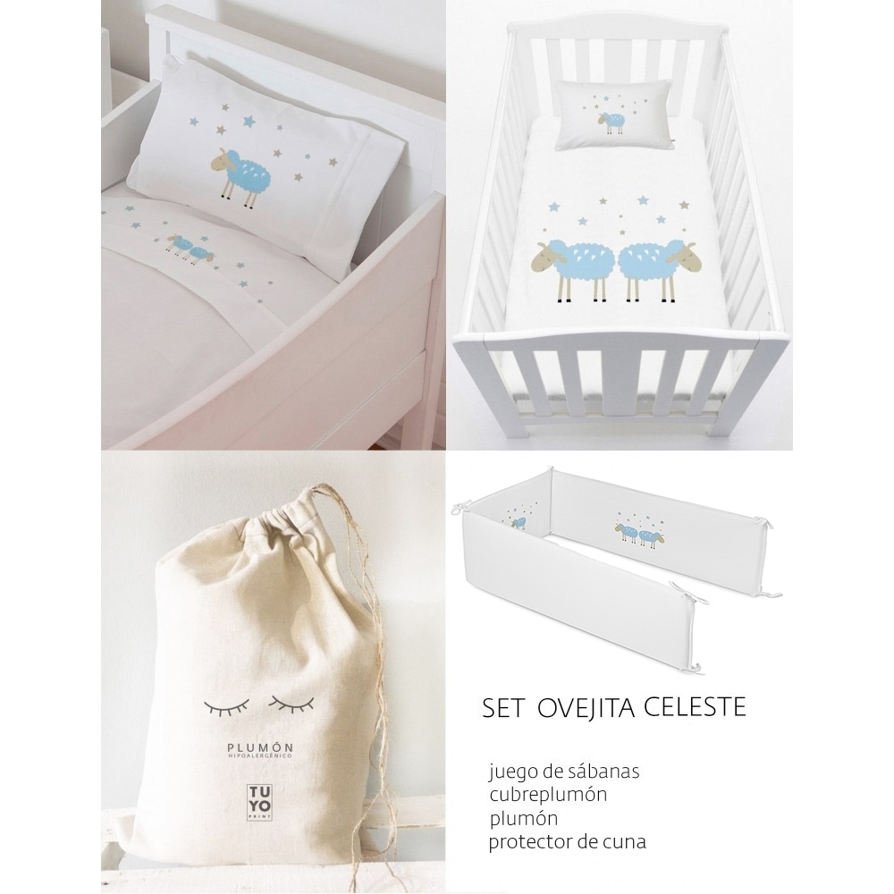 Con este Set de Cuna Ovejita Celeste la cuna de tu bebé será un lugar de total descanso.